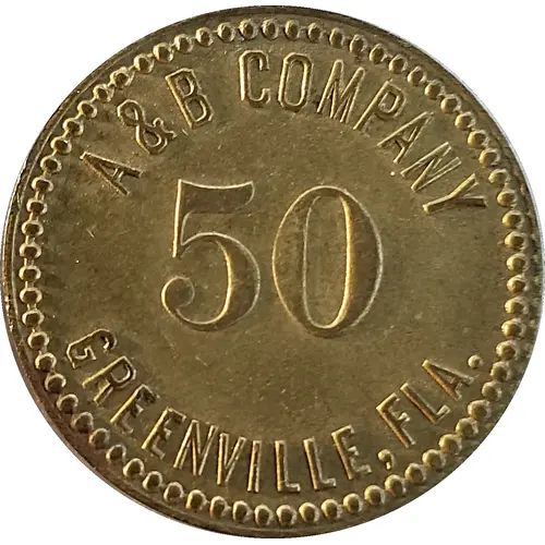 | Obverse lettering | A & B COMPANY 50 GREENVILLE, FLA. |