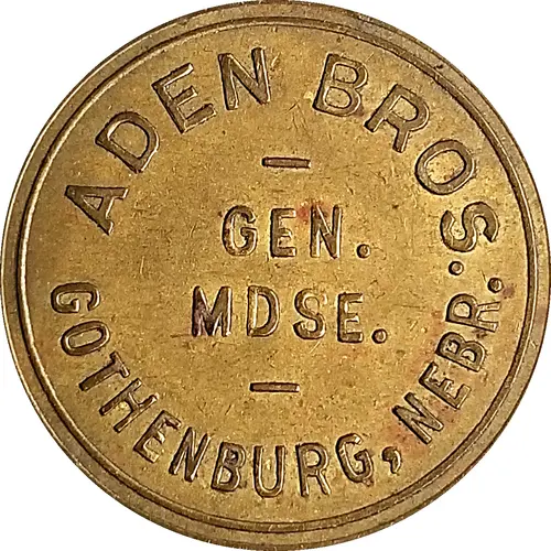 | 表面の銘文 | ADEN BROS. GEN. MDSE. GOTHENBURG, NEBR. |