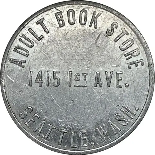 | Obverse lettering | ADULT BOOK STORE 1415 1ST AVE. SEATTLE, WASH. |