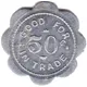 | Reverse lettering | GOOD FOR 50¢ IN TRADE |
