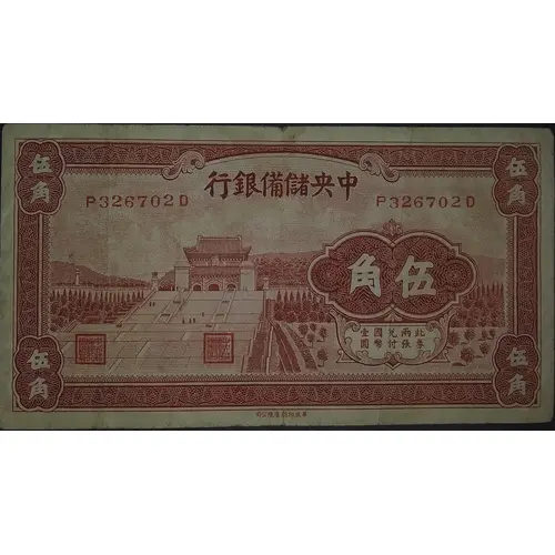 | Obverse lettering | 行銀備儲央中 角伍 年九十二國民華中 (Translation: The Central Reserve Bank of China 5 Jiao (fen) The 29th year of the Republic) |