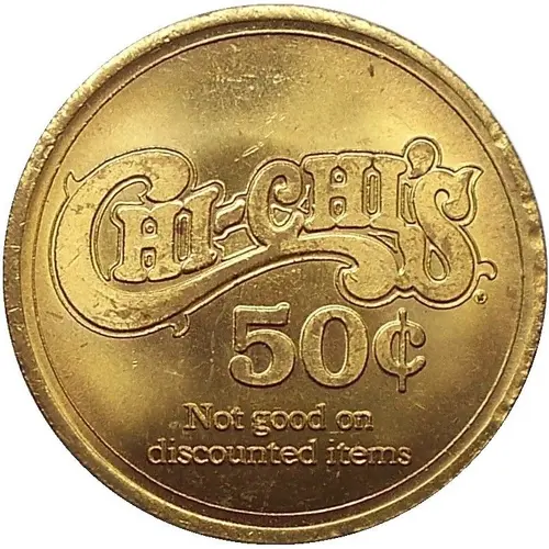 | نوشتههای روی توکن | CHI-CHI`S 50¢ Not good on discounted items |