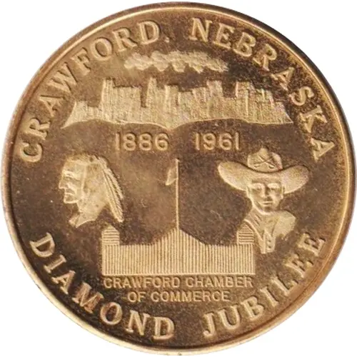 | Legenda awersu | CRAWFORD, NEBRASKA 1886 1961 (Indian - Cowboy) CRAWFORD CHAMBER OF COMMERCE DIAMOND JUBILEE |