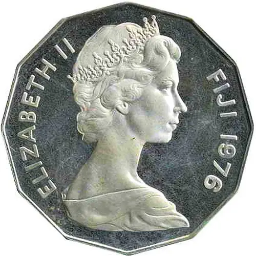 | Obverse lettering | ELIZABETH II FIJI 1976 |