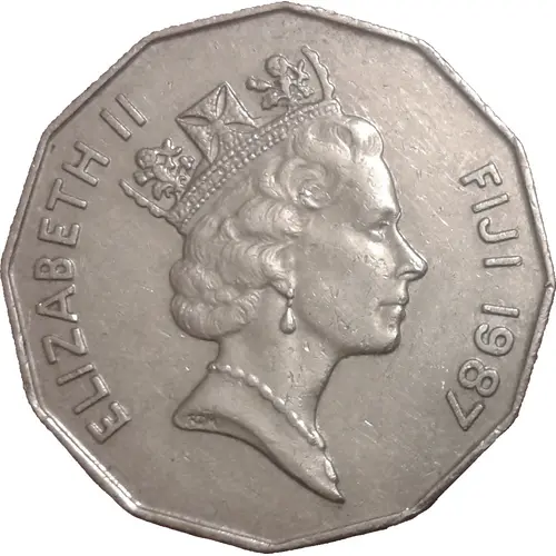 | Obverse lettering | ELIZABETH II FIJI 1987 |