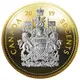 Created by Canadian engraver Thomas Shingles, the design on the reverse represents the Canadian coat of arms. To the left of the shield, a lion holds the Union Jack, while to the right of the shield, a unicorn carries a flag adorned with three fleurs-de-lis. The shield is divided into five sections bearing the historic emblems of England, France, Scotland and Ireland, as well as a sprig of three maple leaves, and is encircled by a ribbon bearing the motto of the Order of Canada: Desiderantes meliorem patriam (They desire a better country). Above the shield is a royal helmet surrounded by a garland of maple leaves, and the helmet`s crest is surmounted by a crowned lion holding a maple leaf. Above the lion, symbolizing Canada`s sovereignty, is the Crown of St. Edward, representing Canada`s constitutional monarchy. At the base of the shield is a ribbon bearing the motto A Mari usque ad Mare (From Sea to Sea) and a garland composed of the floral emblems of England, Scotland, France and Ireland. |