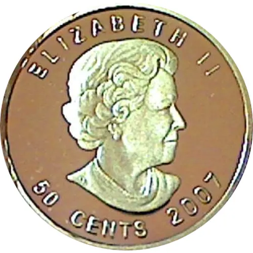 | Obverse lettering | ELIZABETH II 50 CENTS 2007 (Translation: Canada 9999 WW Fine Gold 1/25 oz Pure) |