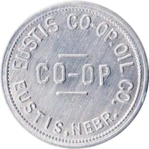 | Obverse lettering | EUSTIS CO-OP. OIL CO. CO-OP EUSTIS, NEBR. |