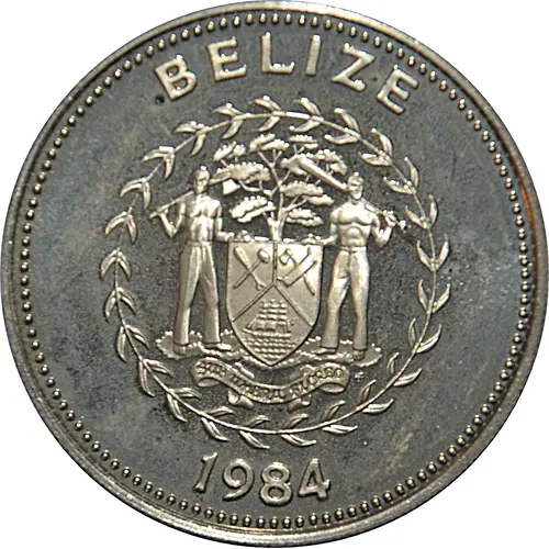 | Obverse lettering | BELIZE SUB UMBRA FLOREO 1984 FM (Translation: I flourish in the shade.) |