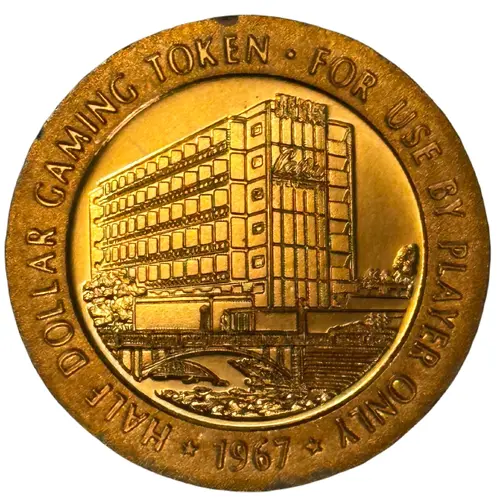 | Legenda del dritto | HALF DOLLAR GAMING TOKEN FOR USE BY PLAYER ONLY Holiday CASINO ENTERTAINMENT 1967 |