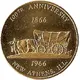 | Reverse lettering | SOUVENIR OF 100TH ANNIVERSARY GOOD IN TRADE AT CENTENNIAL HEADQUARTERS JULY-15-16-17-1966 JOIN THE VILLAGE OF PROGRESS |