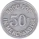 | Reverse lettering | GOOD FOR 50¢ IN MERCHANDISE |