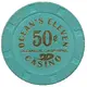 Green, Outer circle 8 images of top hat and cane, inner circle in gold type OCEAN`S ELEVEN 50¢ OCEANSIDE CALIFORNIA CASINO |