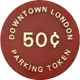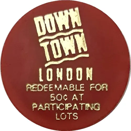 | Leyenda del reverso | DOWNTOWN LONDON 50¢ PARKING TOKEN |