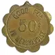 نوشته‌های پشت توکن GOOD FOR 50¢ IN MERCHANDISE