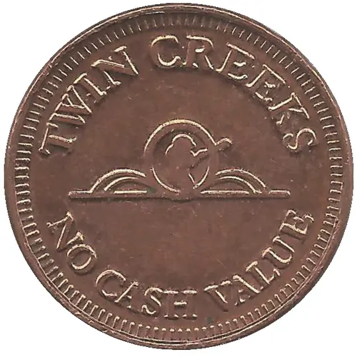 | Obverse description | Hash marks around entire token. Logo in center. TWIN CREEKS on top NO CASH VALUE on bottom. |