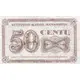 | Chữ khắc mặt sau | LIETUVOS BANKO BANKNOTAS 50 CENTU Banknotu Padirbimas Istatymu Baudziamas (Translation: Lithuanian Bank Banknotes 50 Centu Banknote counterfeiting is punishable by law) |