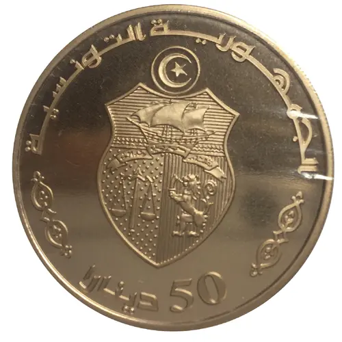 | Obverse lettering | الجمهورية التونسية 50 دينارا (Translation: The Tunisian Republic 50 Dinars) |
