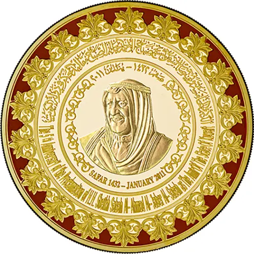 Circular design. Bust of Sheikh Sabah IV Al-Ahmad Al-Jaber Al-Sabah facing left. |