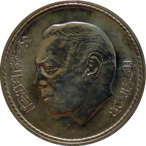 | Obverse lettering | الحسن الثاني المملكة المغربية (Translation: Hassan II Kingdom of Morocco) |