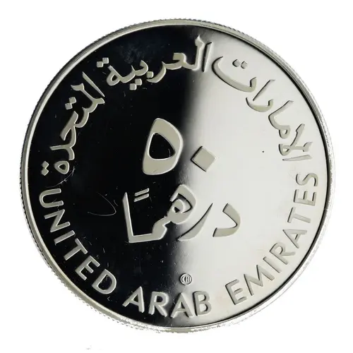 Historical Context: Issued in 1980, this 50 Dirhams coin commemorates the International Youth Year (IYC), a United Nations initiative, though the official year was 1985. The coin's issuance in 1980 reflects the United Arab Emirates' proactive engagement with global humanitarian efforts and its commitment to fostering youth development under the leadership of Sheikh Zayed bin Sultan Al Nahyan, the nation's founder. This period marked the early consolidation of the UAE, establishing its identity as a progressive and internationally-minded state.