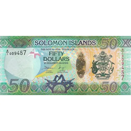 Descrizione del rovescio Montage of local flora and fauna including a shell, a Solomon Islands Skink, a Solomon Island Spiny Monitor, a Solomon Islands Coralsnake, and fungi to recognize and celebrate the unique bio-diversity of the islands.