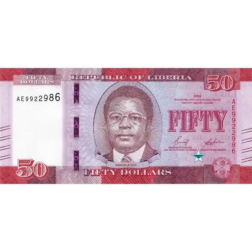 50 CENTRAL BANK OF LIBERIA 50 50 FIFTY DOLLARS |