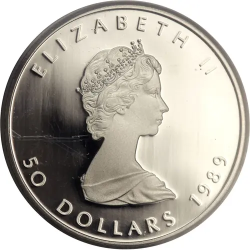 | Obverse lettering | ELIZABETH II 50 DOLLARS 1989 |