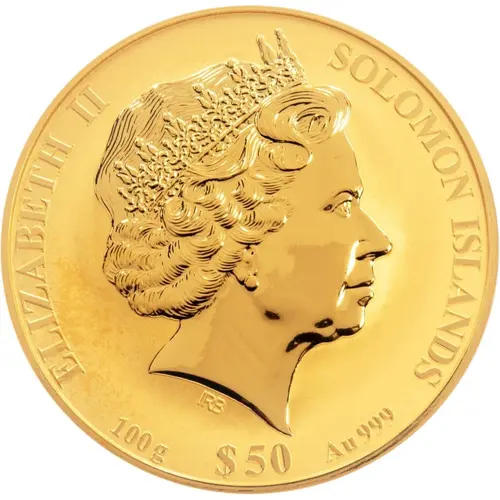 | Obverse lettering | ELIZABETH II SOLOMON ISLANDS IRB 100 g $ 50 Au 999 |