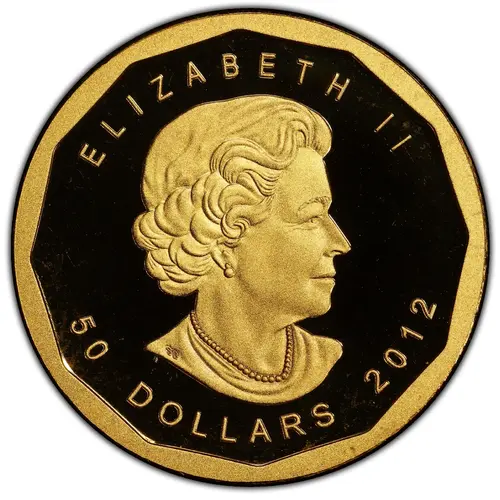 | Obverse lettering | ELIZABETH II 50 DOLLARS 2012 |