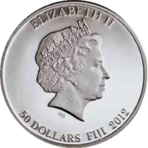 | Obverse lettering | ELIZABETH II 50 DOLLARS FIJI 2012 IRB |
