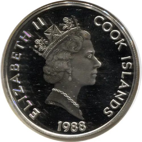 | Obverse lettering | ELIZABETH II COOK ISLANDS RDM 1988 |