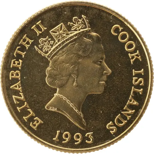 | Obverse lettering | ELIZABETH II COOK ISLANDS RDM 1993 |