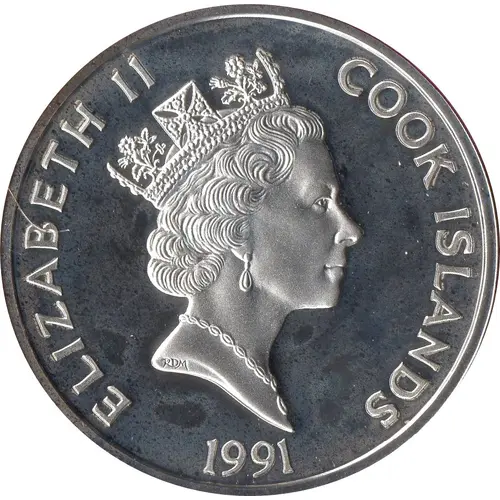 | Obverse lettering | ELIZABETH II COOK ISLANDS RDM 1991 |