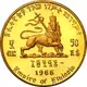 Crowned lion right, right foreleg raised holding cross with ribbons. At sides value in Ethiopian and English. Below date in two different calendars |