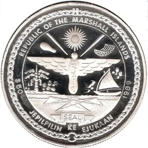 Artistry:The artistic execution of this commemorative piece aligns with late 20th-century modern numismatic design, typically favoring realistic or stylized representations of its thematic subject. While the specific engraver is often uncredited on such issues, the design likely features a compelling depiction of spacecraft, celestial bodies, or symbolic elements representing international cooperation in space. The obverse would invariably bear the national coat of arms of the Marshall Islands, a common feature across its coinage, executed with clarity and precision, reflecting national identity.
