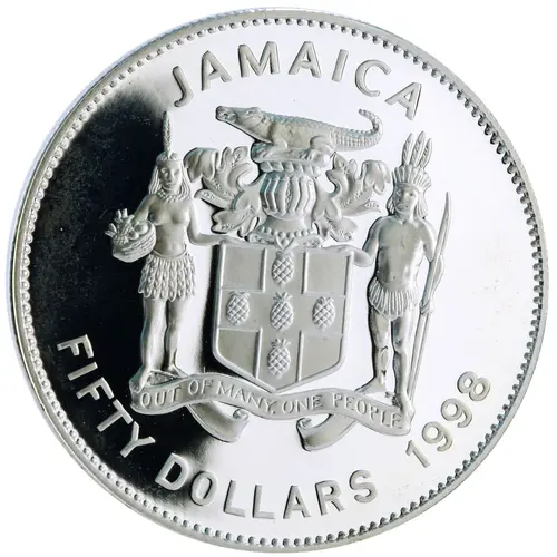| Obverse lettering | JAMAICA 50 DOLLARS 1998 OUT OF MANY, ONE PEOPLE |
