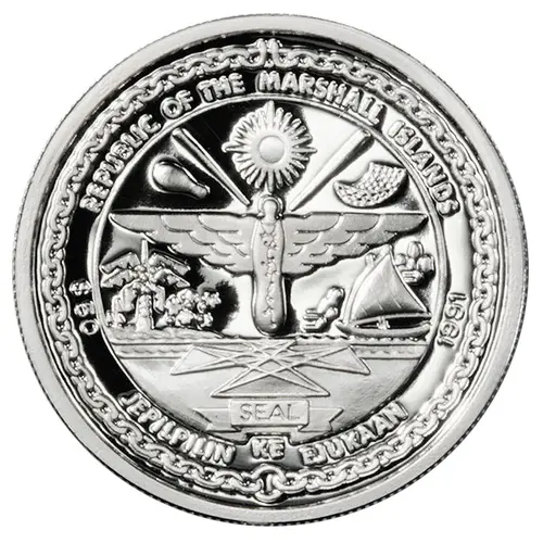 | Obverse lettering | REPUBLIC OF THE MARSHALL ISLANDS 1991 $50 JEPILPILIN KE EJUKAAN (Translation: Accomplishment Through Joint Effort) |