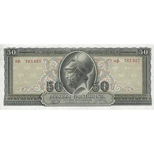 50 ΤΡΑΠΕΣΑ ΤΗΣ ΕΛΛΑΔΟΣ 50 βθ. 229 956 50 50 Α Κ ΠΕΡΙΚΛΗΣ ΔΡΑΧΜΑΙ ΠΕΝΤΗΚΟΝΤΑ ΠΛΗΡΩΤΕΑΙ ΕΠΙ ΤΗ. ΕΜΦΑΝΙΣΕΙ ΕΝ ΑΘΗΝΑΙΣ ΤΗ. 1η ΜΑΡΤΙΟΥ 1955 Ο ΔΙΕΥΘΥΝΤΗΣ Ο ΔΙΟΙΚΗΤΗΣ |