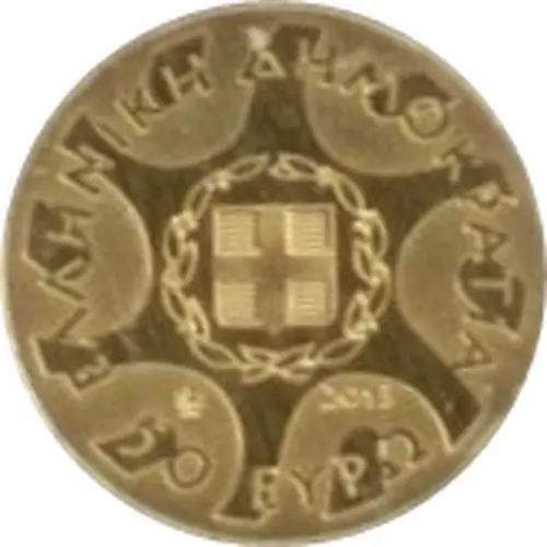 | Descripción del anverso | Mycenaean decorative motifs along with the Coat of Arms of the Hellenic Republic and lettering. |
