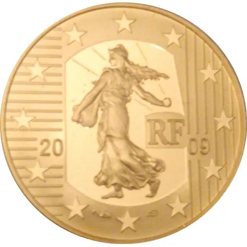 Sower after O. Roty surrounded by the twelve stars of the European flag. |