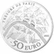 The reverse side shows a modern view of the map of Paris and its districts represented by small pyramids. |