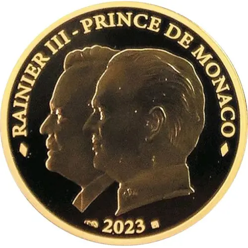 Two portraits on the left of Prince Rainier III of Monaco at two significant moments in his life. |