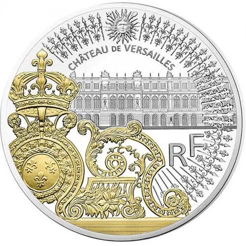 A view of the gates of the château de Versailles. The obverse portrays the central portion of the gates. In the background, a view of the Palace of Versailles from the garden side. |