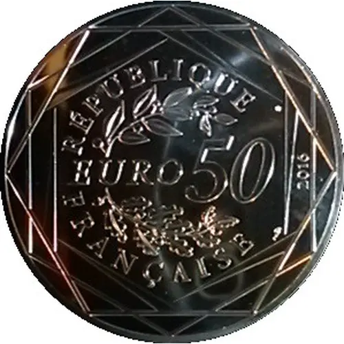 | Opis líce | RÉPUBLIQUE EURO 50 2016 FRANÇAISE (Translation: Republic of 50 Euro 2016 France) |