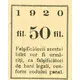 | Reverse lettering | 1920 fil. 50 fil. Falșificatorii acestui bilet vor fi urmă- riți, ca falșificatori de bani legali, con- form codului penal. |