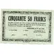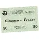 | Legenda do reverso | Toute personne qui se livrerait à la contrefaçon de ce billet serait punie avec la plus extrême rigueur en vertu du code pénal en vigueur. Cinquante Francs Le remboursement de ce billet sera assuré en conformité des statuts règlementant son émission. |