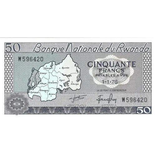 | Obverse lettering | Banque nationale du Rwanda cinquante francs 1-1-76 |