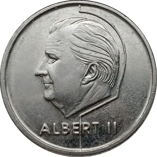 | Obverse description | Portrait in left profile of Albert II with his name below. Central line following silhouette. |
