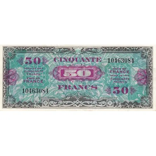 | Obverse lettering | CINQUANTE FRANCS SERIE DE 1944 EMIS EN FRANCE (Translation: Fifty Francs Series of 1944 Issued in France) |